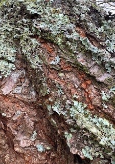 Earlier in my chemo cycles, the capecitabine pills decided to go for my feet, causing them to become red and inflamed, leading to the unpleasantness and pain of peeling skin. As the worst of this has passed now, my recent wanderings around the winter garden have brought me face to face with bark! Getting up close to the trees in a way that I have not done before, I notice the beauty of the texture of bark, it's subtle colours and the micro life forms that exist within it or on it.