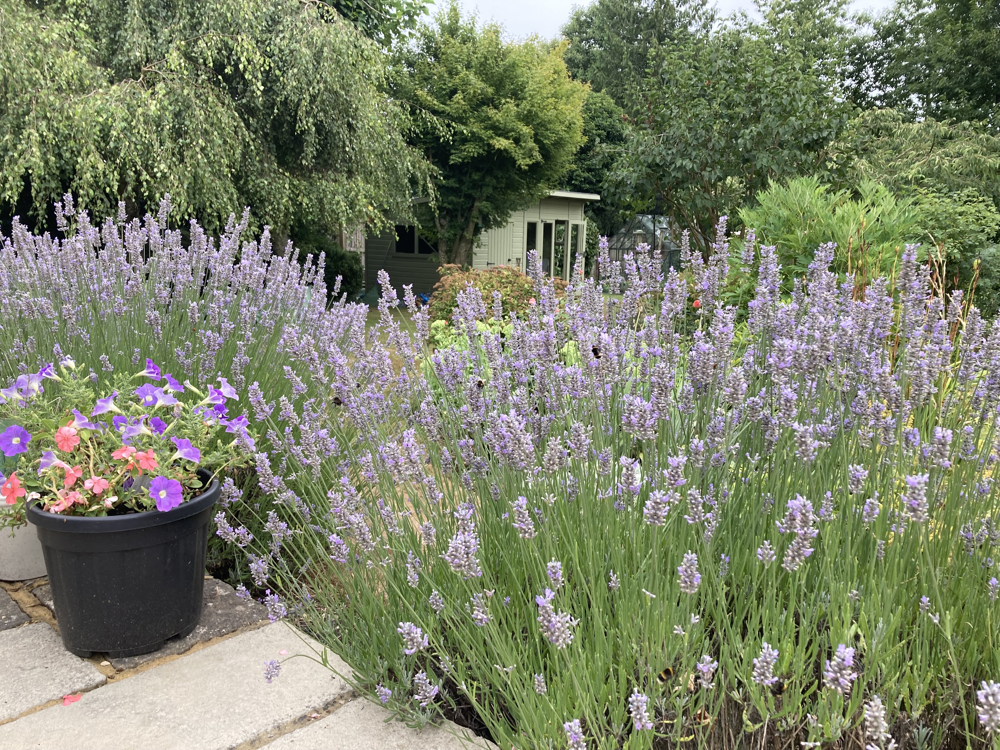 The photo here is from a hot day, with the bees busy buzzing in the lavender.