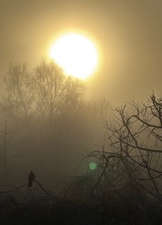 A new year for us all. I was greeted by ethereal light as the sun shone through the cold frosty morning mists. A pigeon perching: just another day for a bird.