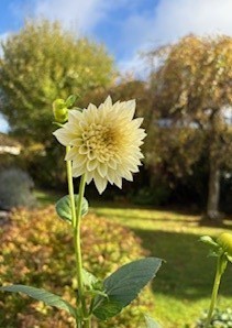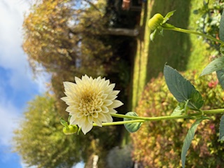I love this picture, nature's beauty of a dahlia at a time of seasonal transition.