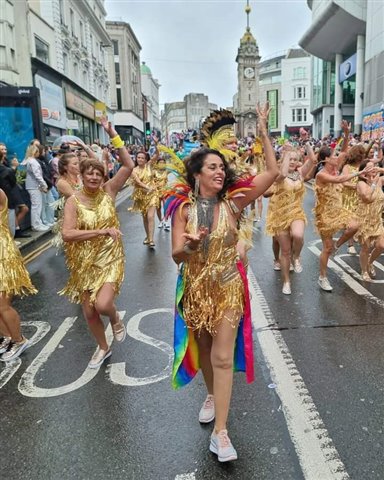 Wet cold start and had to cover up with clear plastic ponchos but once we saw the crowds it didn't matter. The sun even came out at one point. Pride in Brighton 2023.