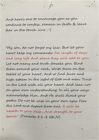 Over my 130 night in various hospitals over my main 2 years treatment the sheets of paper below were somewhere near me….. on my bedside table, on the wall….. for all to see.