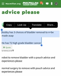 The Community is actually divided into dedicated Support Groups (Discussion Rooms) and I do see that you have already joined our dedicated Bladder cancer support group. This is a safe place to talk to others who may have a similar diagnosis, treatment experience, to ask questions and get support from family members who are navigating the same journey.