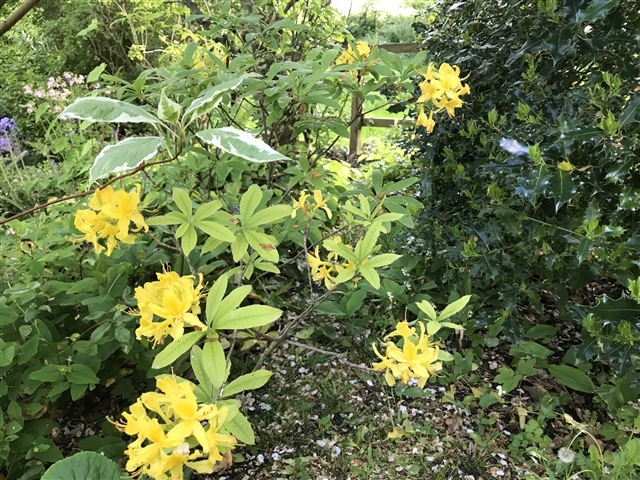 Ooh ooh ooh Rhododendron Luteum!!! Just seeing your lovely pic recalls to me the unique hot-cross-bun-y scent, which I absolutely love though I've never owned one. My dad used to tow us round all sorts of rhododendron hot-spots like Kew Gardens, though I was always eager to go along. And there were some wild in a part of Epping Forest near High Beech where the old Paul's Nursery had been returned to the Forest many years ago. We used to go up there to see what there was, and once heard a grasshopper warbler there in the thickets.
