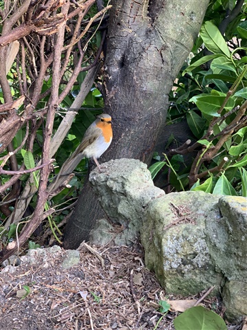 Our robin didn't get this close, but sweetly serenaded me for a good while from the birch tree opposite while I did a bit more in the front garden. Pleased to have made any progress at all before the forecast very chilly spell. Slow going after a nasty cough, but I am almost better, Mr D wilted at lunchtime and couldn't help. Just hope he's better tomorrow so doesn't miss Men in Sheds, going does him so much good.