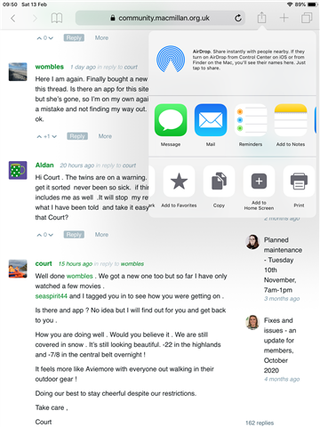 If you tap the box with the arrow pointing up it will bring this box up. If you scroll across the bottom black and white boxes there is one called add to home screen, tap on that, then tap done and it will save the site as an icon on your iPad screen? Apologies if you already knew this but that’s how I get in and I’ve also just uploaded my first ever photo yay!