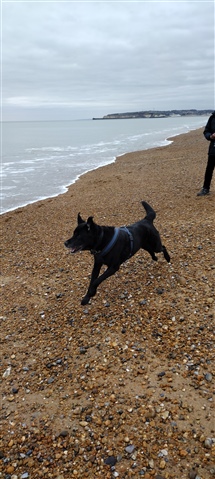 We had a walk on a pebbly beach again. I get grumpy if I'm inside too much. Cabin fever they used to call it. It feels hotter outside sometime. Merlin found some doggy friends and even had a paddle.