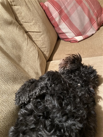 Dexter asleep on his back .. always very chilled at caravan