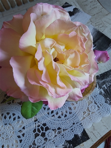 Mum didn't mind.....it looks lovely in her coffee table display but it is the most enormous bloom I've ever grown.......
