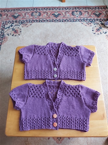 I finished my knitting for the fete. Three little boleros for girls aged 4 to 6.