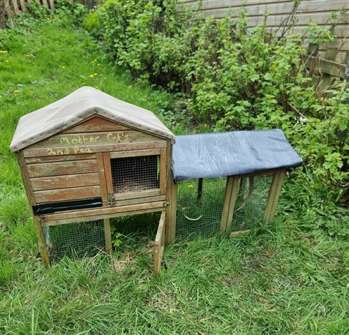 We did the cat houses yesterday, they don't look too pretty but it's a big garden. The flap over the grill is to put down when it's raining. This is just the back garden. The front garden cat has 3 boxes.