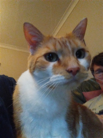 LP has arrived, he's had some tea, and is chatting with Marmalade.
