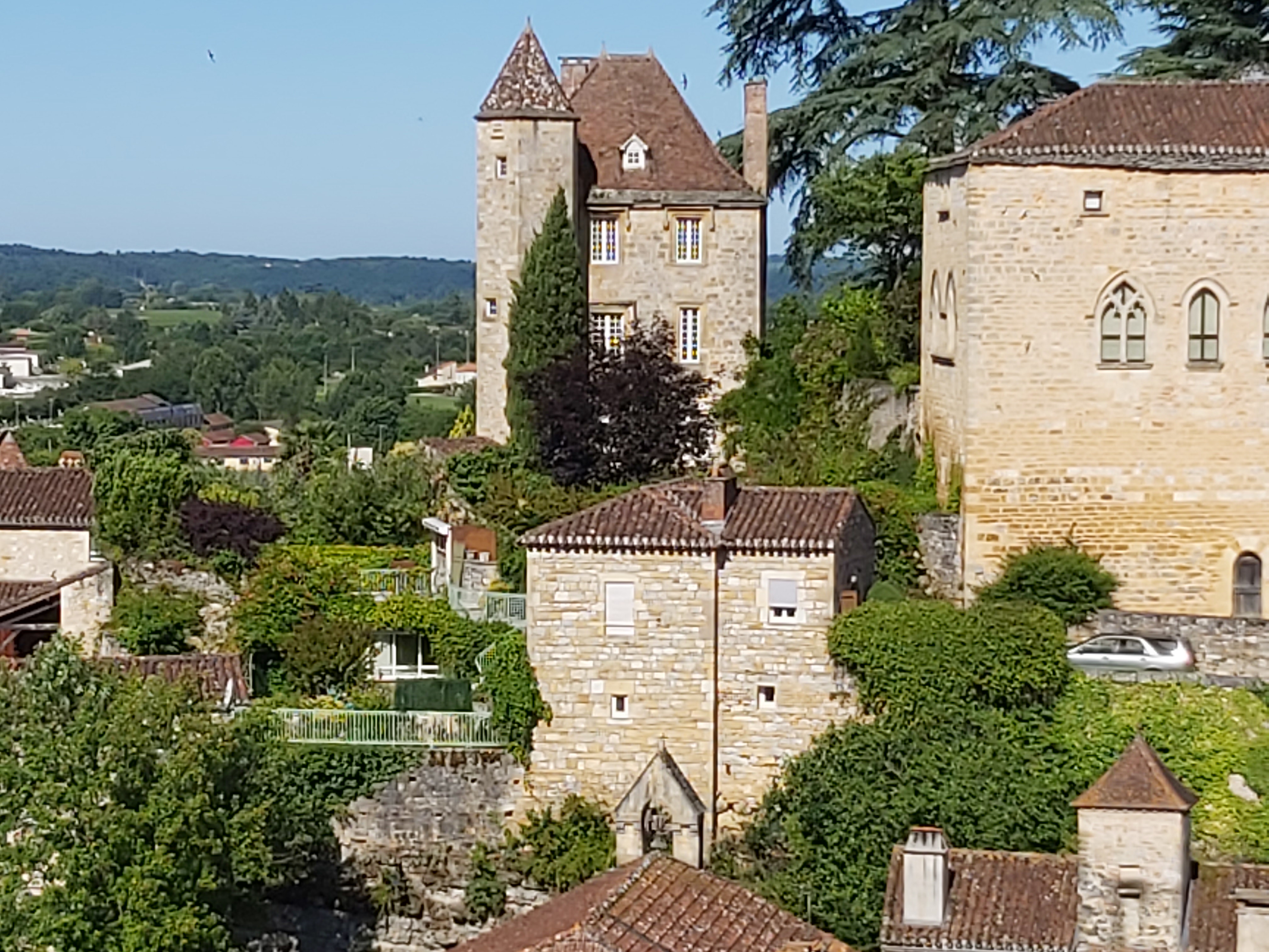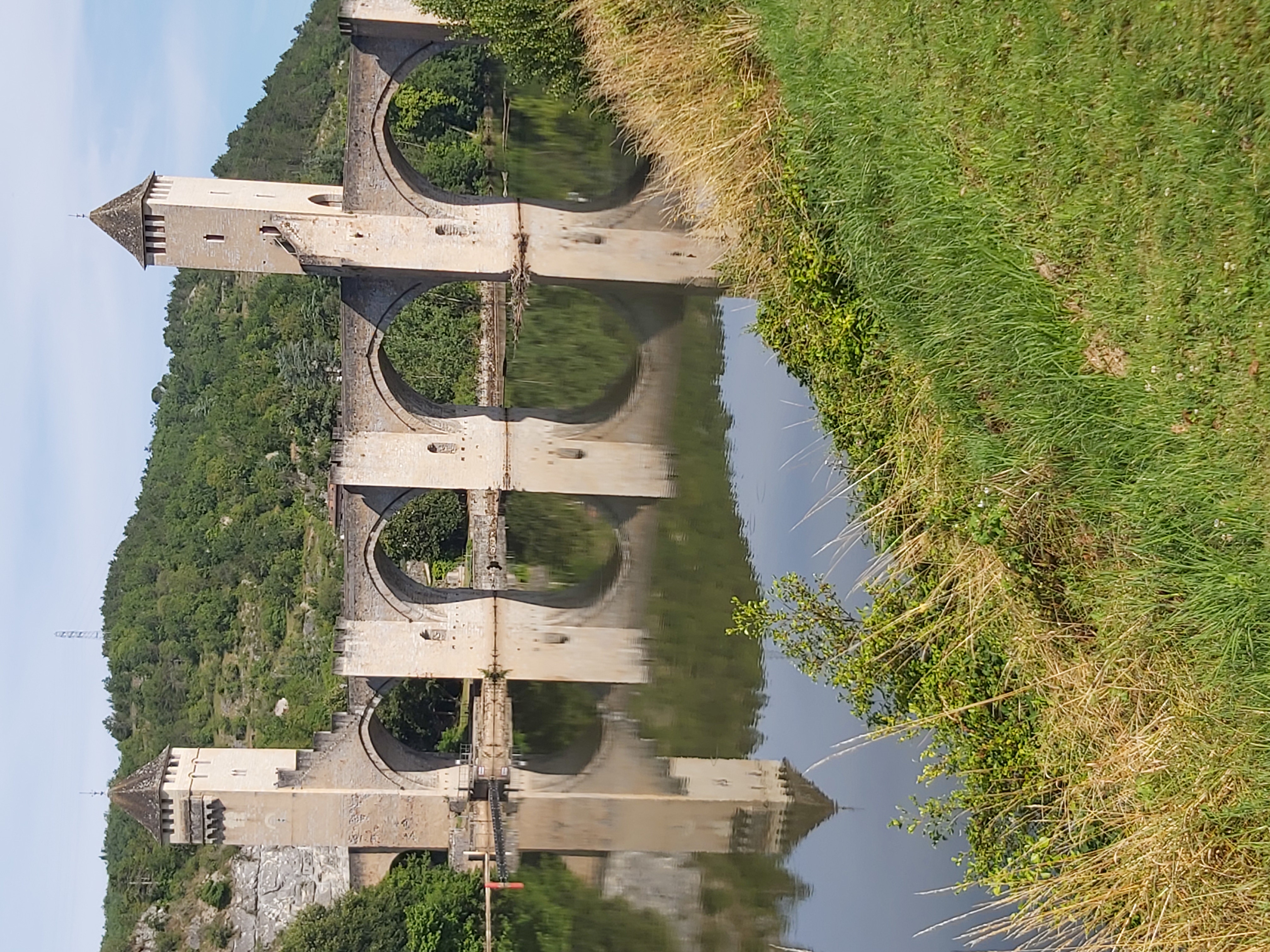 Sitting in a shady square in Cahors.one sideways bridge but you get the gist.