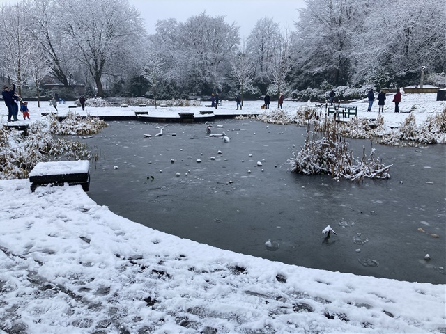 Yes Grogg we have had snow but it melted. Got out early and enjoyed crunching through fresh snow, lovely. Lots of snowmen in the park, and some snow dogs. We have plastic herons and duck in the ponds, and they all have a little Santa riding on their backs. Will try to post a pic.....