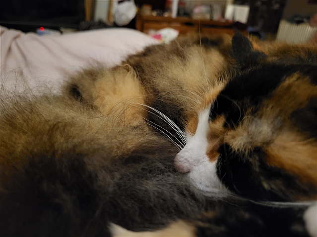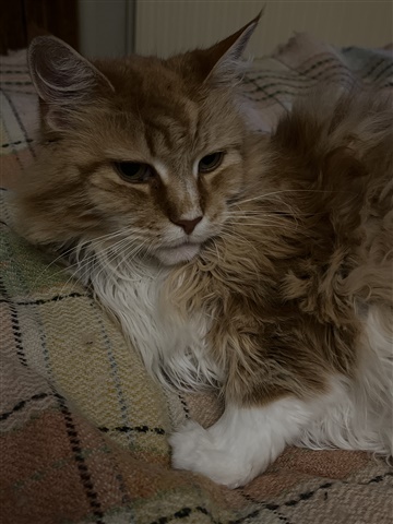• What an absolutely  beautiful cat.Sorry you couldn't sleep. I hope you are sleeping now  and thank you for the best wishes. I know it has to be done but I am scared. My fluffball of a cat kept me company last night too
