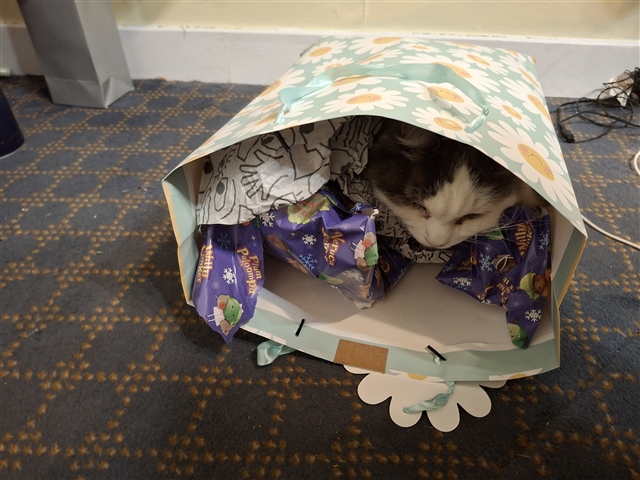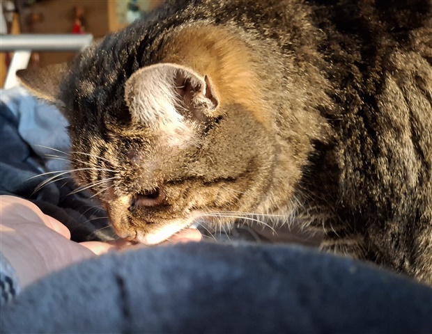 This is Indy, cat to my friend who I visit on Christmas eve - and this year also Christmas day - with. And then Tiki eating treats this morning.