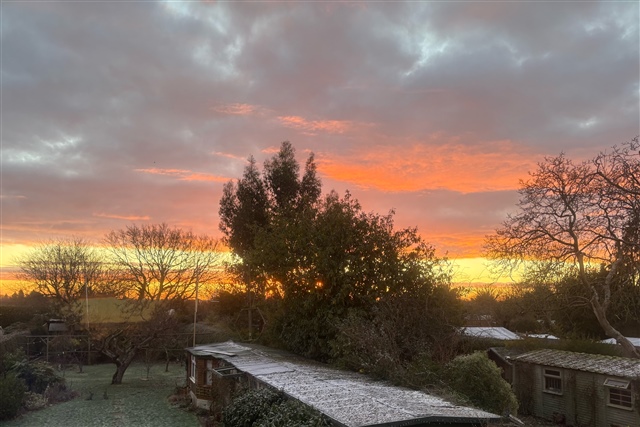 I’ve not walked for couple of days, stayed in in the warm & painted. Have taken photos of sunrise & sunsets, so beautiful. It snowed a little today as I went to dentist & shopped. It actually felt warmer. May rain tomorrow here, in Berkshire.