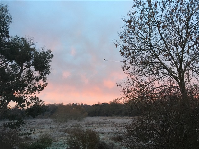 Heavy frost overnight then Glorious sunny but very cold day here HappyFeet1 just back from doggie walk . I've explained to D that it's not as warm as it looks but he wants to sunbathe in garden. I suppose wearing a thick fur coat helps