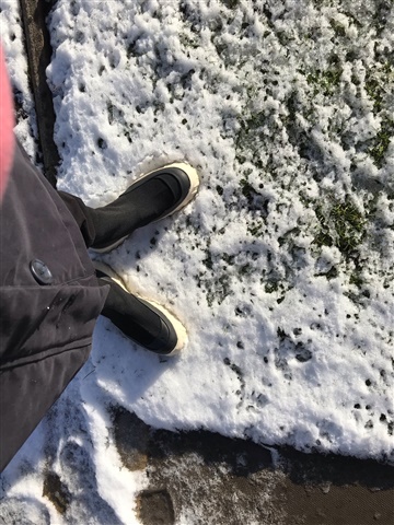 I wore my snow boots today...yippee!...I looked a bit like a clown as they are slightly big...but I looked round and nobody was noticing.