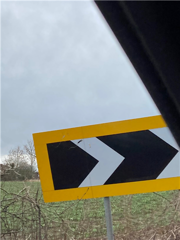 Yellow road markings and sign