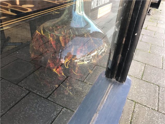 my artsy-fartsy shot of dried red peppers in a jar with the glass depicting the opposite building....xxx