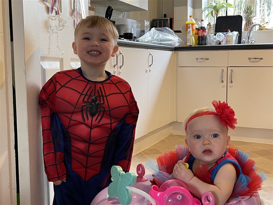 Loving all the different shades of red, my offering is my grand babies dressed up in theme for my grandsons 3rd birthday