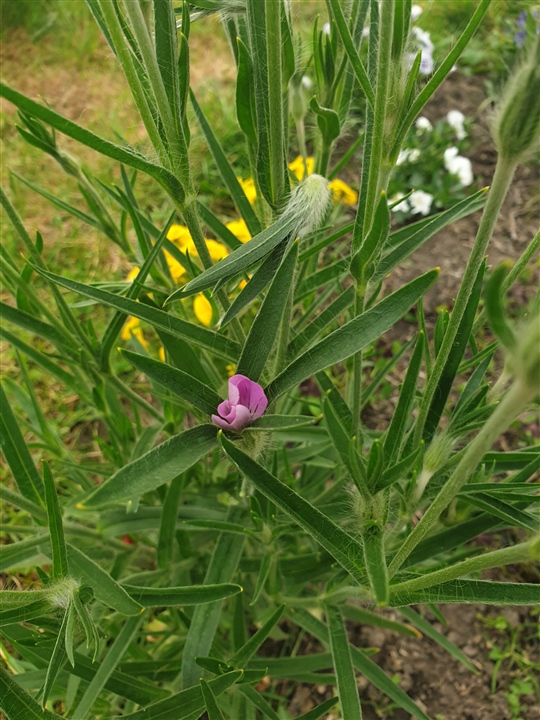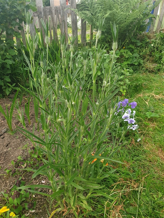I think it’s a corncockle. They’re becoming rarer so are being included in wild flower mixes to help spread them about.
