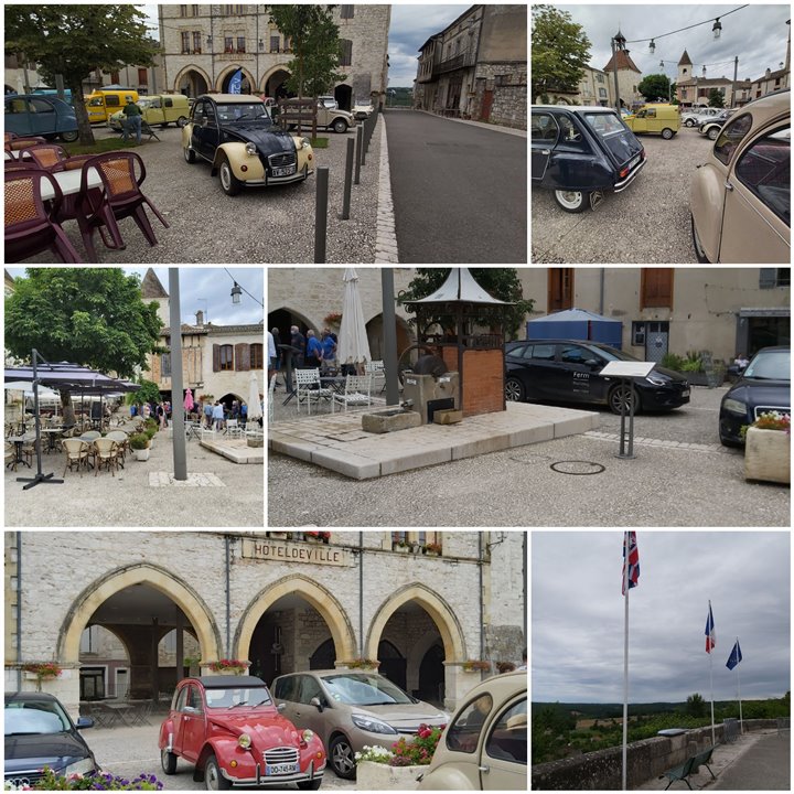 An appropriate entente cordiale bottom right plus a 2CV rally in the village square. Something for everyone.....flowers, cars, buildings, views!