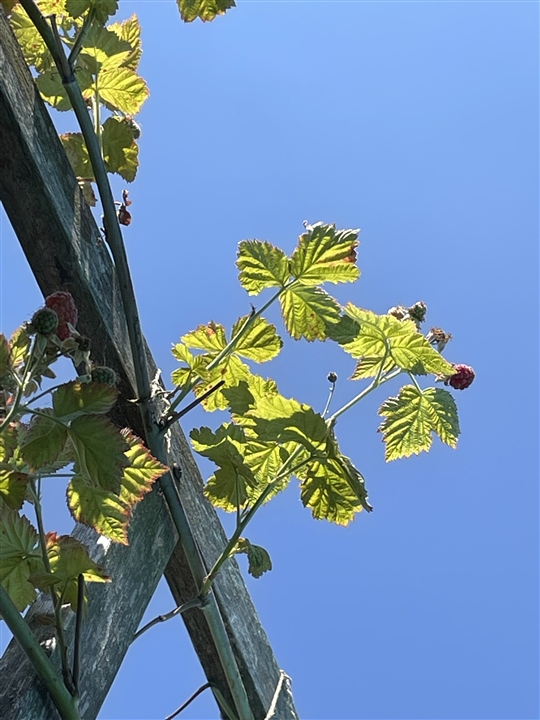 I looked upwards earlier and the loganberry looked amazing against the sky, all the leaf veins were so clear-cut.