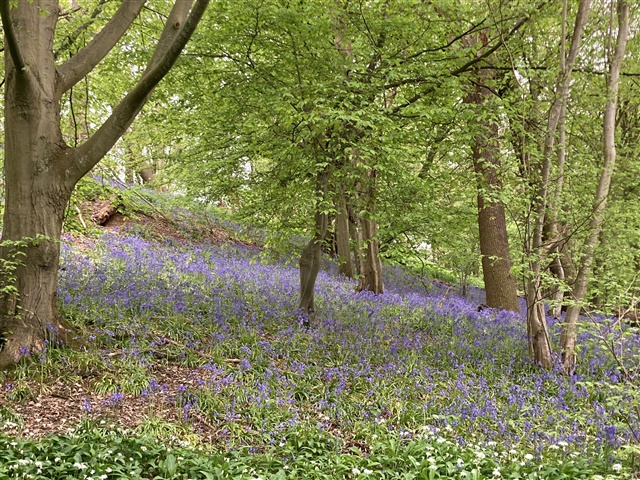 Have had some lovely walks in past few days, walked with my nephew on Sunday on one of my favourite ‘to next town and back’ routes, past some very cute young cows. Then long walk yesterday with best friend, another familiar route with banks of wild garlic and bluebells in the woods. Nordic walk this morning but no photos from that. Nice ending at local cafe! Love to all, HFxx
