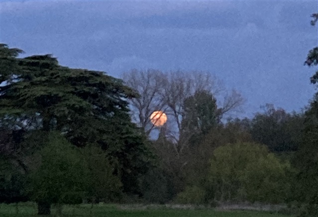 Unusual Nordic walk for me on Friday evening - a walk to photograph the Flower Moon! Shortish walk over a golf course (public footpath) to a bridge where we watched the moon rise. Only a few photos as it was cloudy. Saw a heron and a little muntjac while we were waiting for Mrs Moon…. Xx