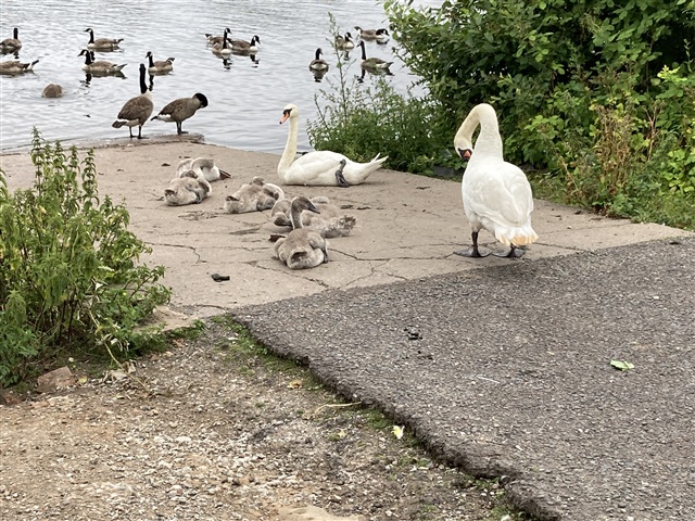 At last managed a waterpark visit now it is cooler. The swan family I have been following were there, cygnets much bigger.
