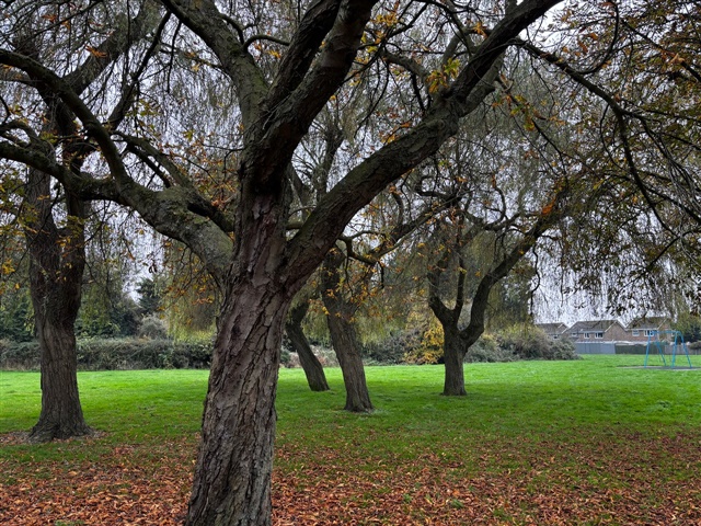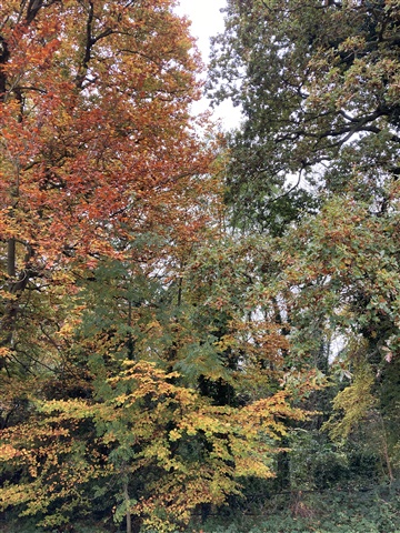 This mornings pre-breakfast walk (a mile again) shows some trees have shed all their leaves, some still have quite a canopy left.