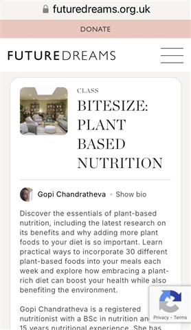 Hi Flossie25 and Sabrina22 , we talked about a possible London meet up a while ago. I’m going to be in London on Monday 25th November for a plant-based cookery session at Future Dreams House in Kings Cross, at 12pm. If either of you (or anyone else of course!) is interested, there seem to be places available. I’ll try to attach the link and will also attach a couple of screenshots re the session, if I can. Would be lovely to meet up but I know it’s short notice. Would also happily meet after the workshop if better. Xx