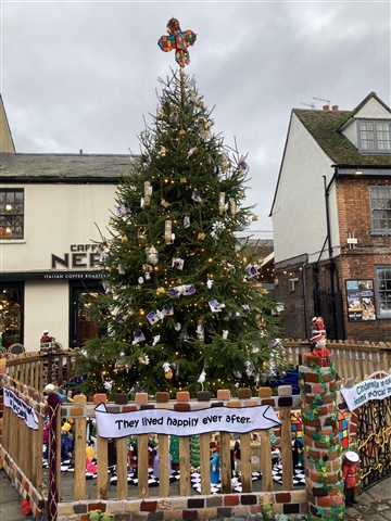 Glad you’ve woken the thread up Flossie25 ! I’ve been walking but also seem to be forgetting to take photos lately. Did 2 lovely Nordic walks last week in different bits of the countryside nearby, we had some welcome blue skies but didn’t capture any of it! Mind you it’s difficult to take photos with the poles though we do stop for slugs of water and nose blows! Have also walked in and out of town so here is the town Christmas tree complete with wonderful yarn bomber decorations. Very clever. Love to all, HFxx