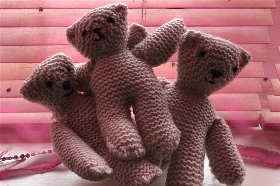 well,I haveto admit,rainy day activities today... bit working my way back to happiness... have managed to finish some stress teddies.we are making them in Knit n Natter.They are for firemen to carry in the front of their fireengines for traumatised children at house fires xxmy little grandniece helped a lil bit xx