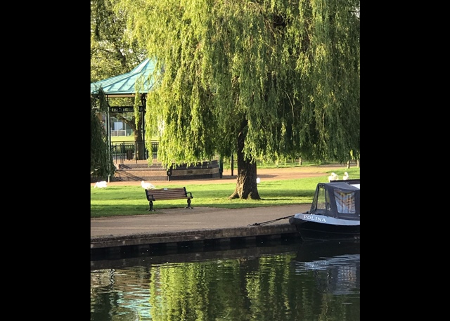 I went to vote extremely early the other day,as I was awake,was the second one there!!but I thought I would take a walk down to the River it was such a lovely morning...and it was soo peaceful and the Swans came gliding up in a battallion,on that beautiful morning,and some went to visit the bandstand.( probably needs a caption?).....