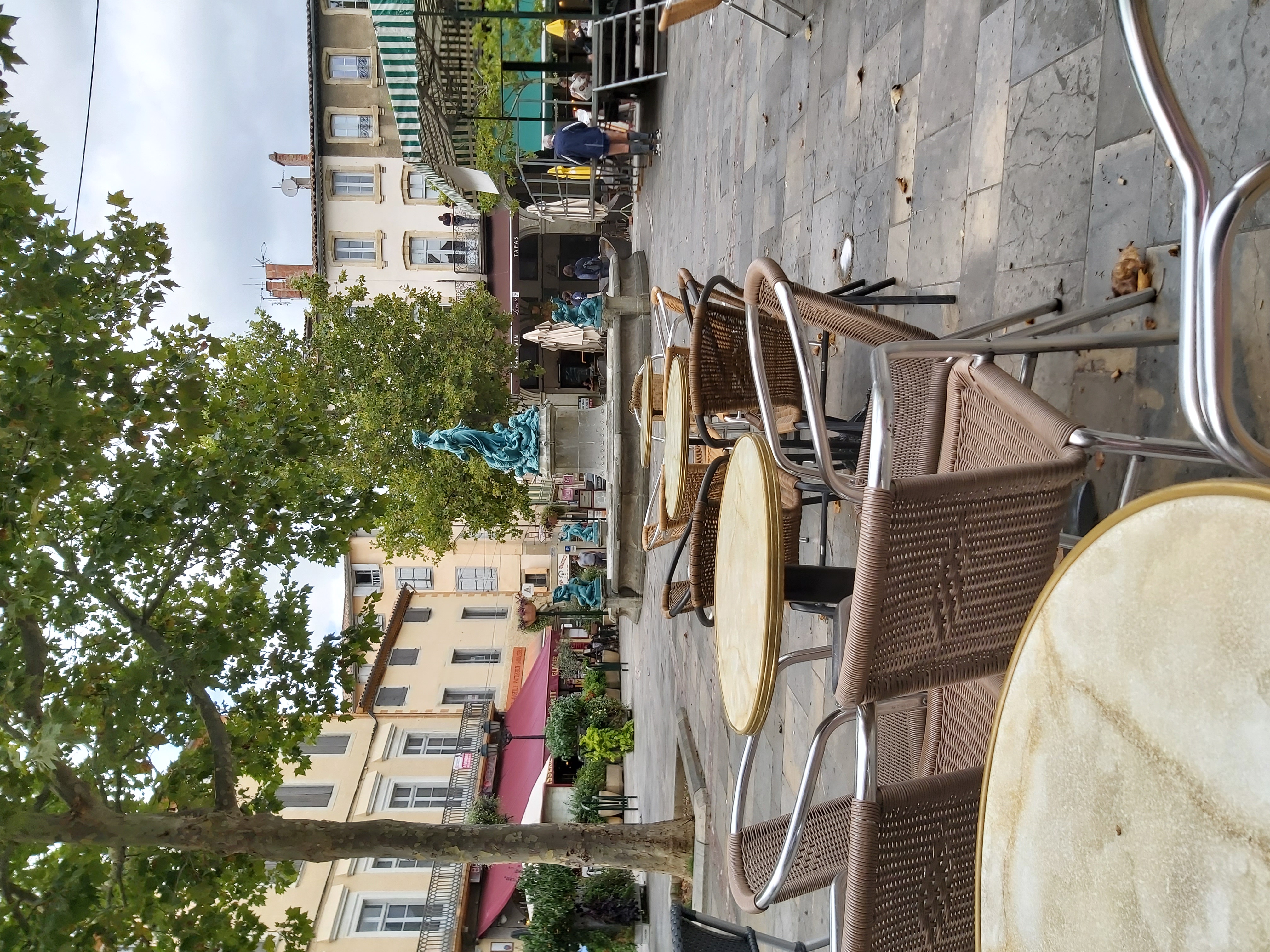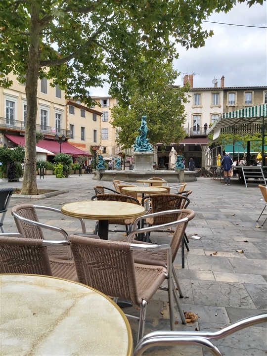 I've let the side down on walking today but I have driven 400km south and we have walked all four corners of this charming little town ( Limoux.....Of Blanquette fame if you drink sparkling white) looking for an open pharmacy as OH woke up with sore throat and blocked nose and felt the need for an inhaler. I was so glad to end up in the square for a coffee before driving up into the mountains for our B and B. Tomorrow we will go through the mountains and should be close to the coast by lunch time.