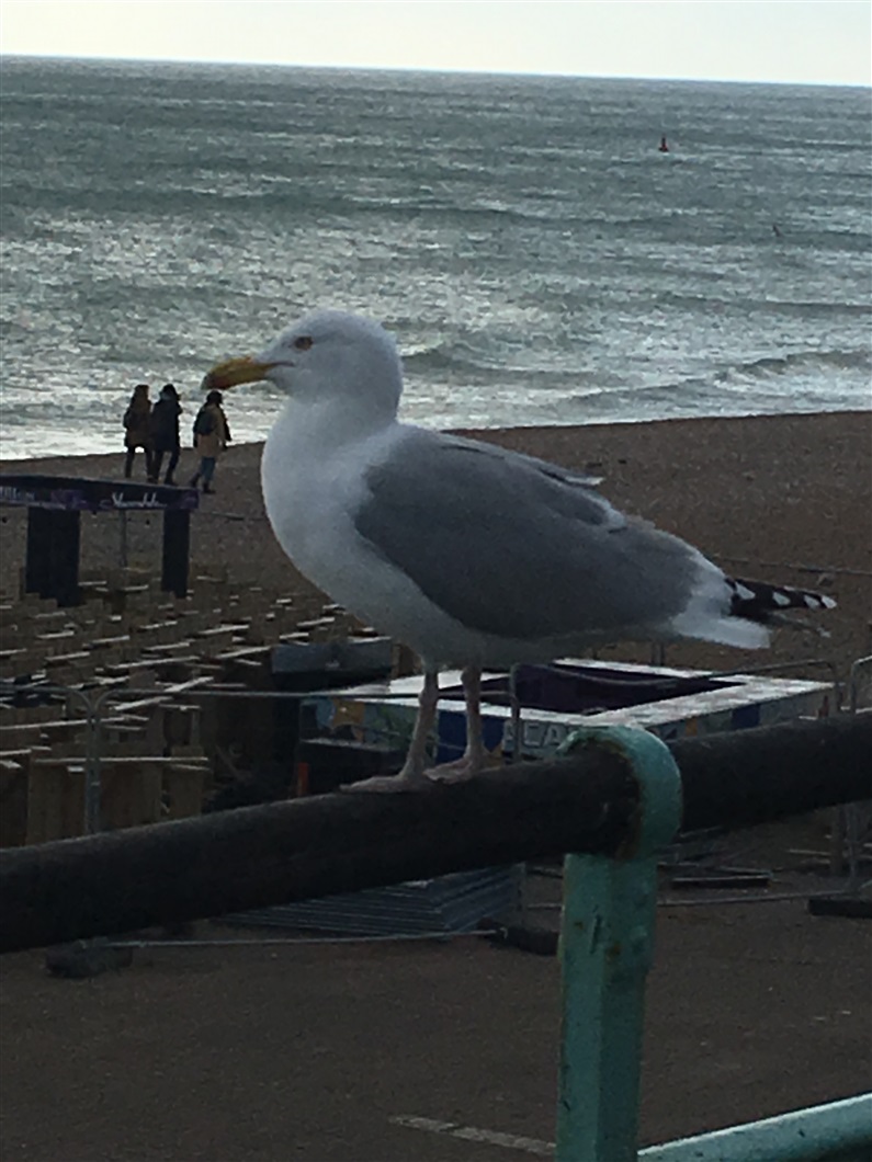 that seagull looks like its pecking those heads off, its huge!