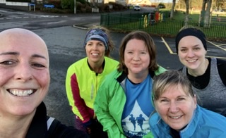 hi everyone. Well it was a sunny day so I decided to go for a run with some of the ladies from my running club ( guess which one I am in the photo!!). We ran a beautiful run through the hills back into our village so I managed 7.8k before my body said it had had enough. Not bad for a run after my second chemo, although it was more difficult than normal for sure.