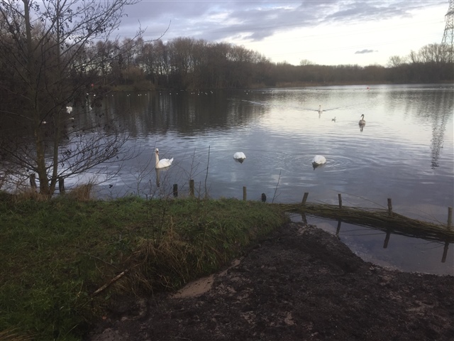 Yesterday was lovely and sunny, today very windy, and I got drenched in a sudden hailstorm just going from loo to car! Then it stopped. Really enjoyed it though. Saw 12 swans, 2 grebes, 2 cormorants, ducks geese and coots, but no herons.