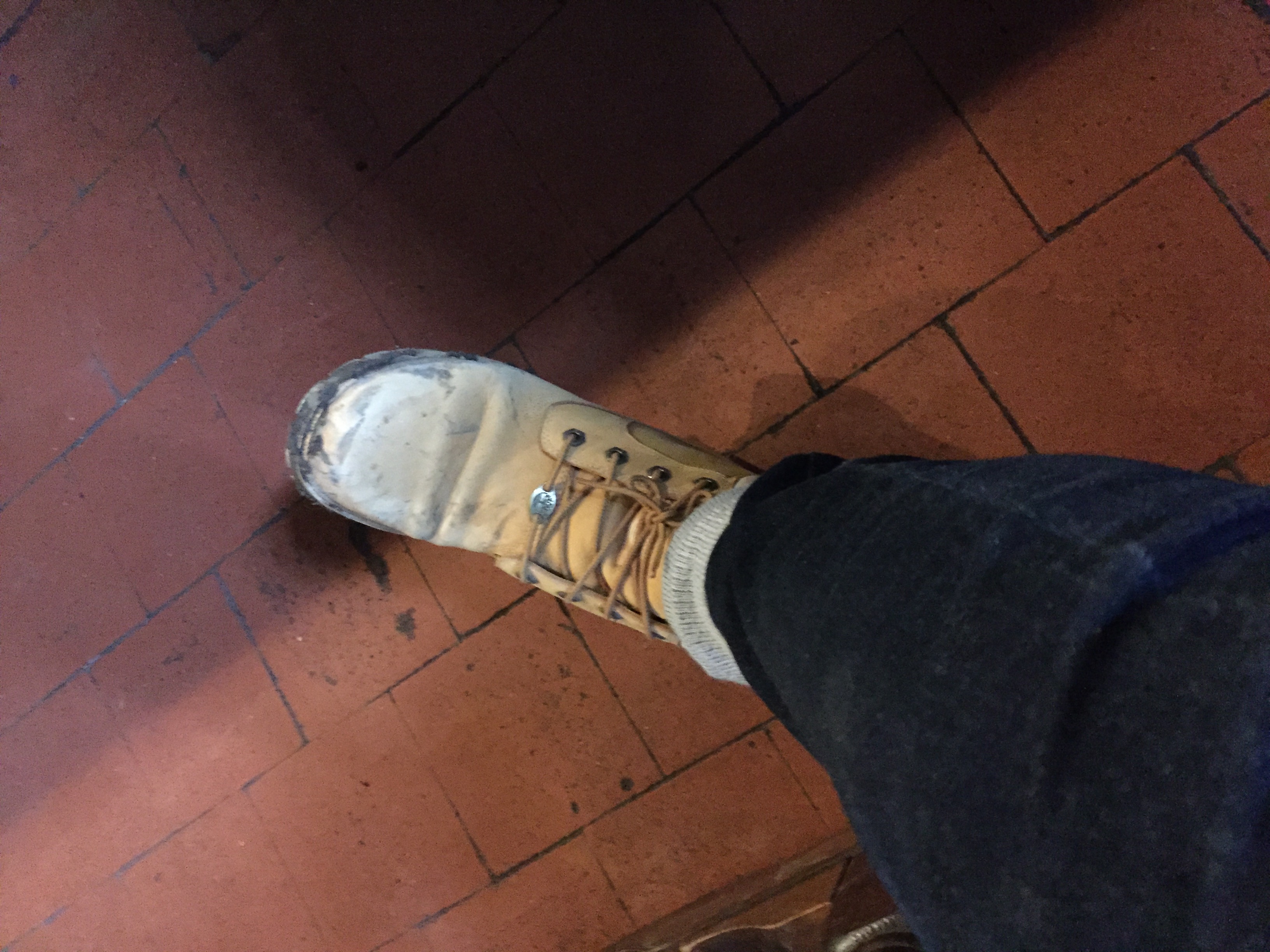 One very muddy boot photographed in a pub. Good lunch. And a waitress that reminded me of Mrs Overall from Acorn Antiques. Lots of silly humour that caused.