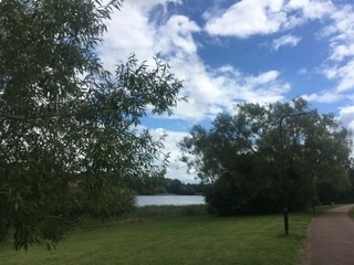 That was a good walk this afternoon, almost 4 miles part of the way using ‘redways’ (these are Milton Keynes multi-use tracks) and footpaths to this small lake, all the way round and then back home along an old railway.