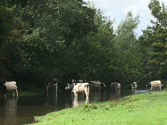 Escaped most of the rain today, lovely long walk to a nearby village, picnic in the park then back again. Cows in the river on the way, and a skeleton tree on the way back (if the photos post). Love to all, HFxx