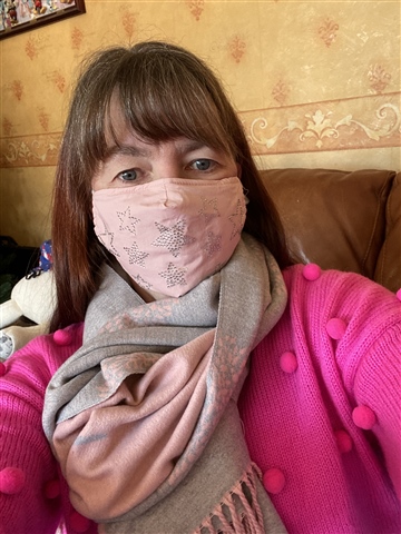But I’m in pink Pom poms, scarf and mask so perfect letter for me today
