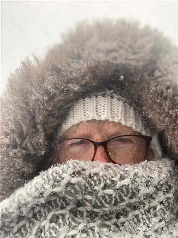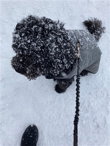Dexter looks so cute in the snow Northerner but oh so cold for you both, good to see you wrapped up with a good hood and lovely scarf xx