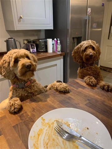 They are very intelligent and easy to train Kwissy most poodle crosses appear to be a bit scatty but actually very intelligent . It's hilarious when I'm out with Dexter as they all seem to recognise each other it's like a doodle meet and greet lol. On the north lakes doodle site she has posted a video of the sisters begging must admit she is def mad dog lady . All her dogs are house dogs think she has at least 6/7 of all shapes and sizes .