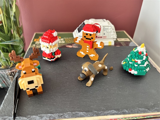 Santa brought lots of Lego and mini Lego-like kits, pic of the mini ones plus a plasticine dog…