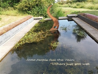 This is at Pallington Lakes - "Sculpture by the Lakes" in Dorset and stunning place to visit with lots of thought provoking art and phrases like these dotted around. They often having special events too. Spent yesterday afternoon sitting in a copper swing chair looking at a sculpture in the lake with a swan paddling around it - and finally coming near to where we were sat and it had a sleep. Talk about a relaxing place, I felt so calm and chilled out at the end of the day.