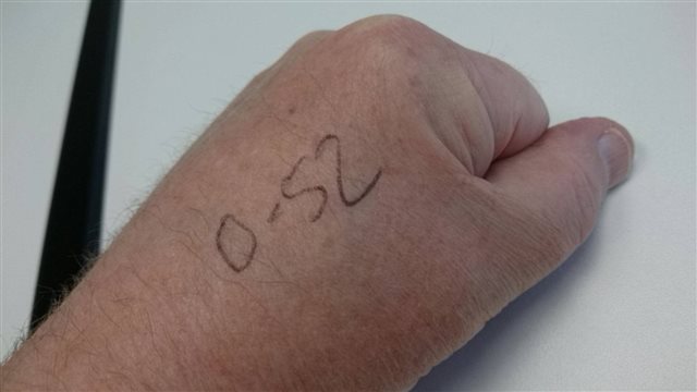 Neither of those things is relevant, but let's say I was already in a good mood when I received a call back from The Christie. I was hoping to find out the results of a PSA test I took on January 26th. My PSA score on October 15th last year when ADT started was 7.2. My PSA score this week is 0.52. I asked for verification - and got it. Then I wrote it on my hand, like you do.